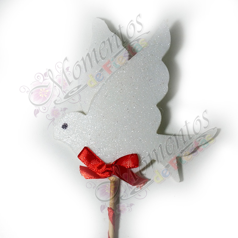 - Adorno de torta paloma doble, hecho a mano con brillo glitter, montado en palito de brochet, de 8 cm aprox.