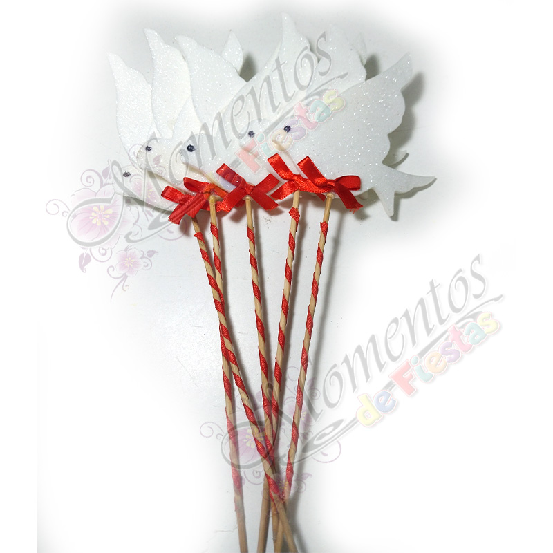 Adorno de Torta – Paloma doble x5 unidades (c/rojo)