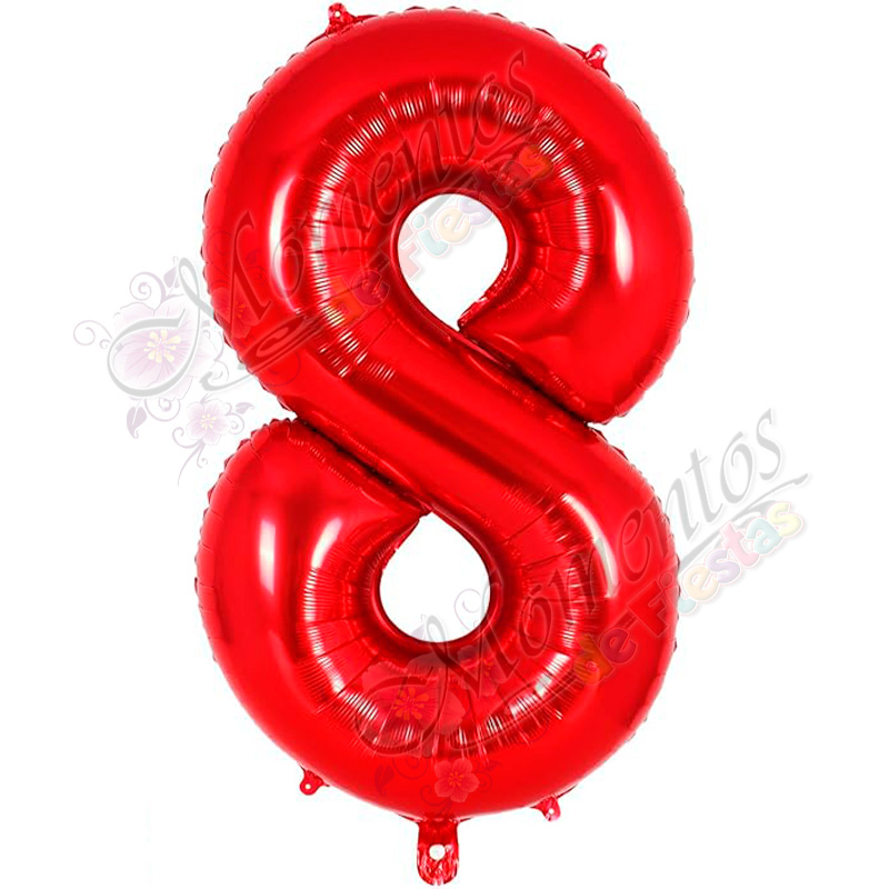 Globo número metalizado color ROJO, ideal para cumpleaños y celebraciones.