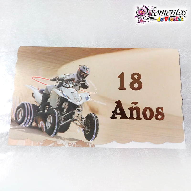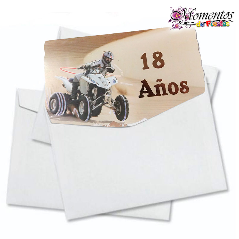 Tarjeta de Invitación Rectangular con Sobre x10 unidades – 18 años – Cuatriciclo [Cod. 037]