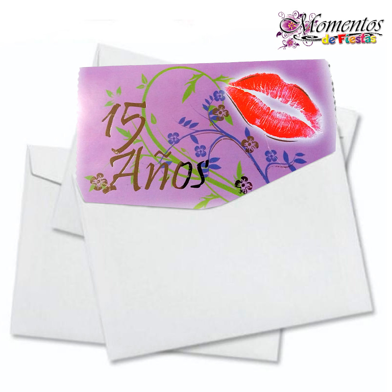Tarjeta de Invitación Rectangular con Sobre x10 unidades – 15 años – Labial [Cod. 043]