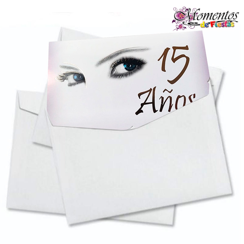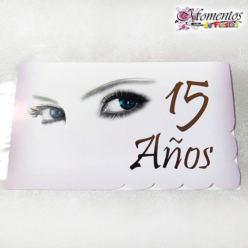 Tarjeta de Invitación Rectangular con Sobre x10 unidades – 15 años – Ojos [Cod. 040]